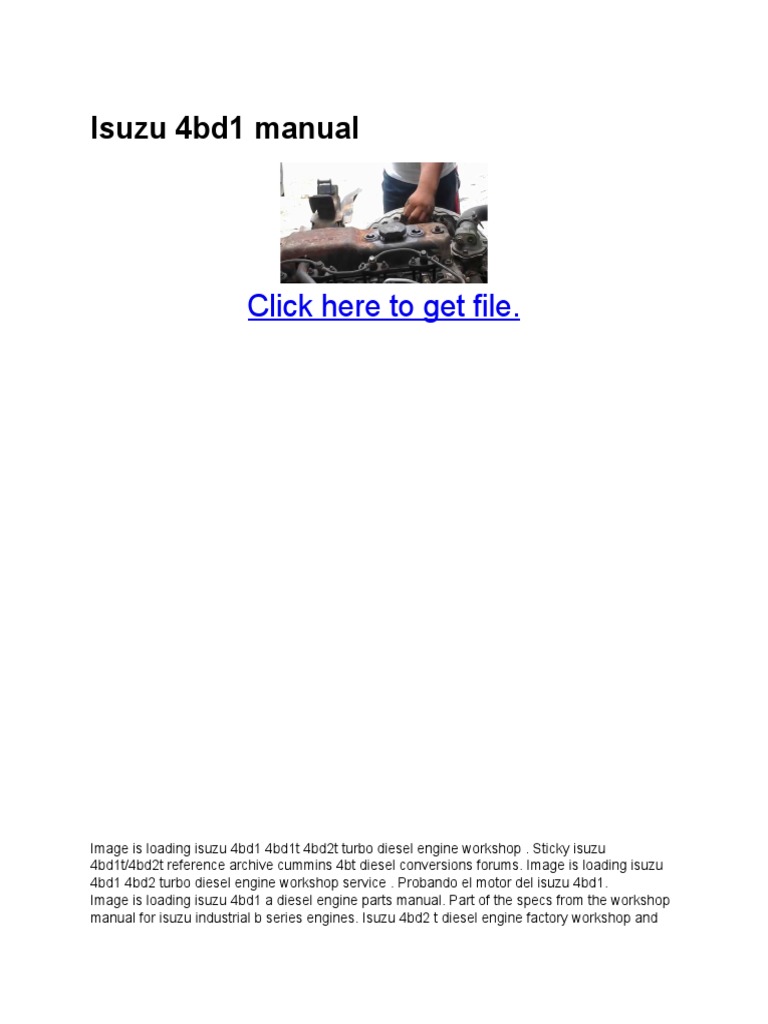 Isuzu 6bd1 pdf user manuals. Power is 37 5 ps 28 kw. 6bb1 4bd1 4bd1t 6bd1t 6bg1t 6bd1 6bg1. Engine 6bb1 used exchange.
